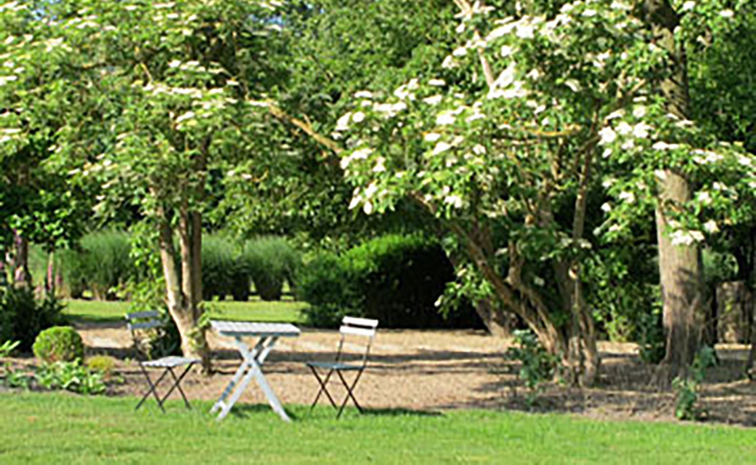 Der in Nähe des Hauses gestaltete Formengarten ist durch eine klare Symmetrie gekennzeichnet. Hecken, Taxuskegel, Kugeln und Einfassungen aus selbst gezogenem Buchsbaum bilden zusammen mit in Form geschnittenen Gehölzen das Grundgerüst. Statt vieler Blüten gibt es grüne Rabatten. Unterschiedliche Blattformen und immergrüne Pflanzen bringen Struktur in den Garten.